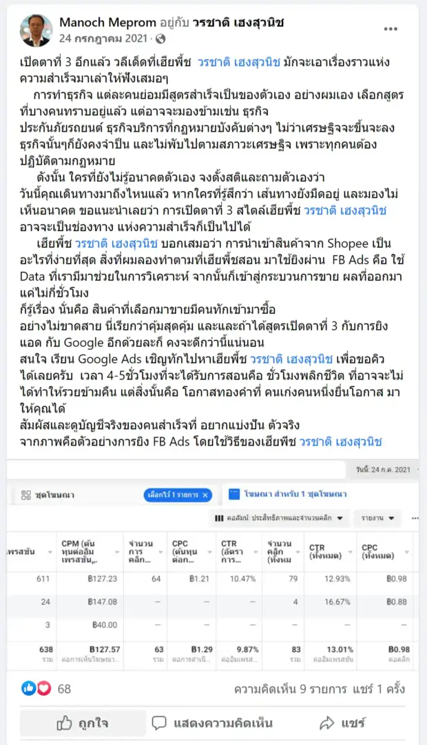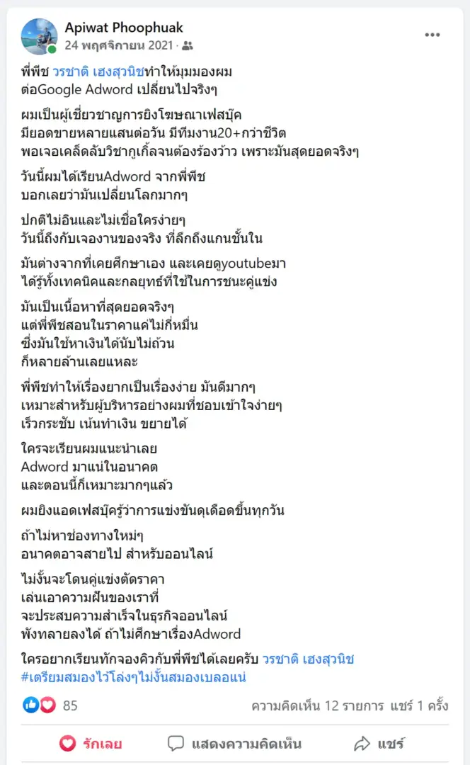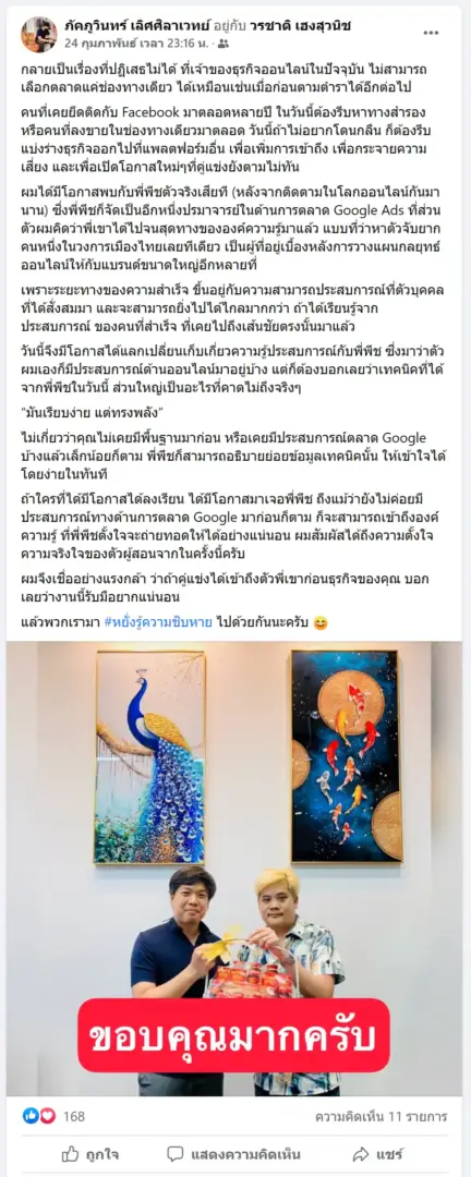 “ ถ้าท่านเอาจริง ลงมือทำจริงๆ ผมกล้าการันตีได้ว่ายังไงท่านก็สามารถประสบความสำเร็จกับธุรกิจออนไลน์ได้อย่างแน่นอน ”