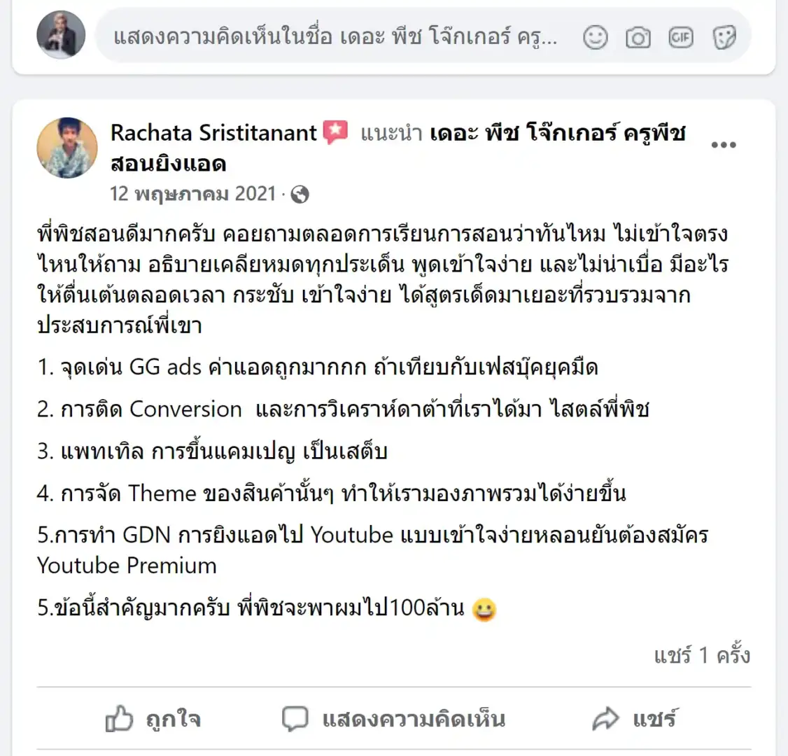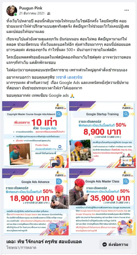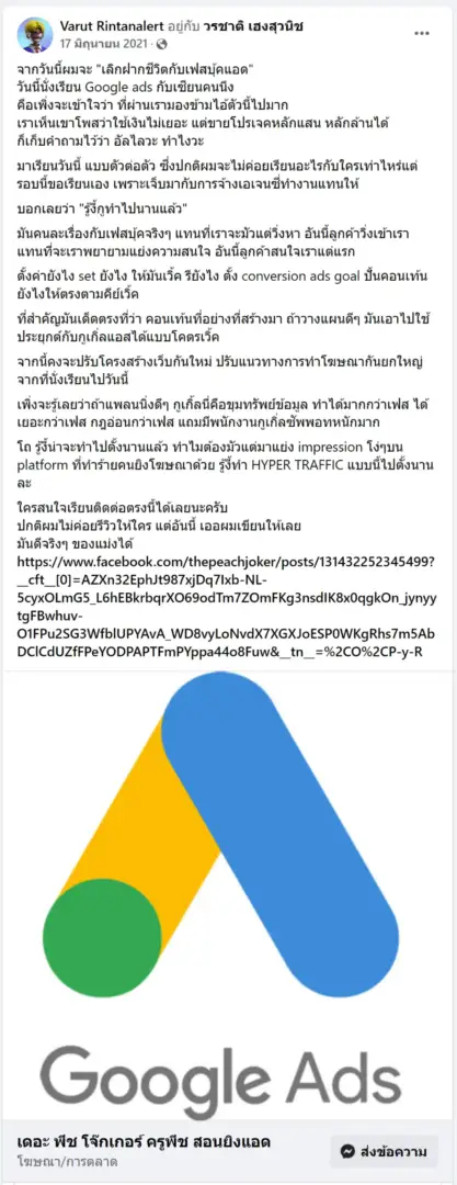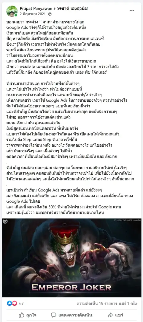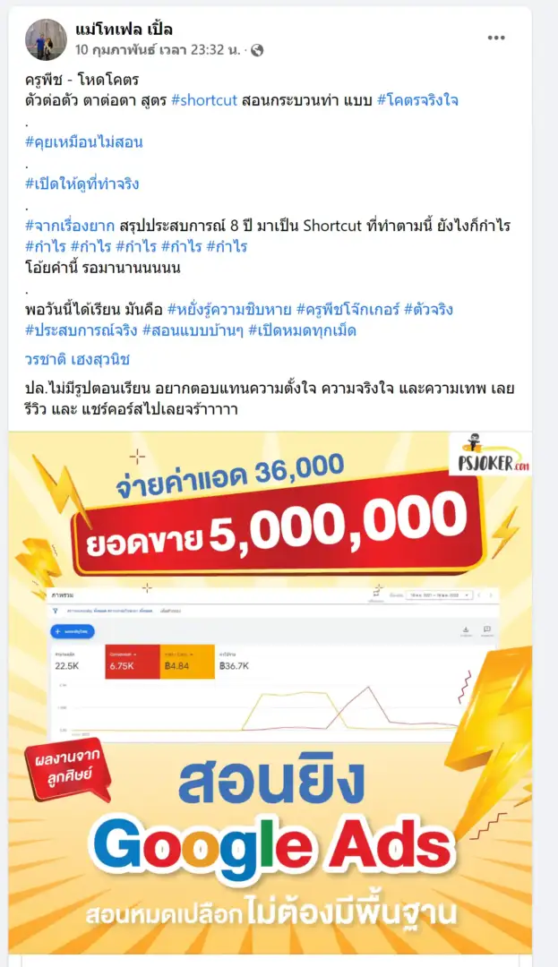 รับสอนยิงแอด เรียนยิงแอด แบบ ตัวต่อตัว สอนจากประสบการณ์การทำธุรกิจออนไลน์โดยตรง กว่า 20 ปี โดย ครูพีช (เดอะ พีช โจ๊กเกอร์) และ ทีมงาน