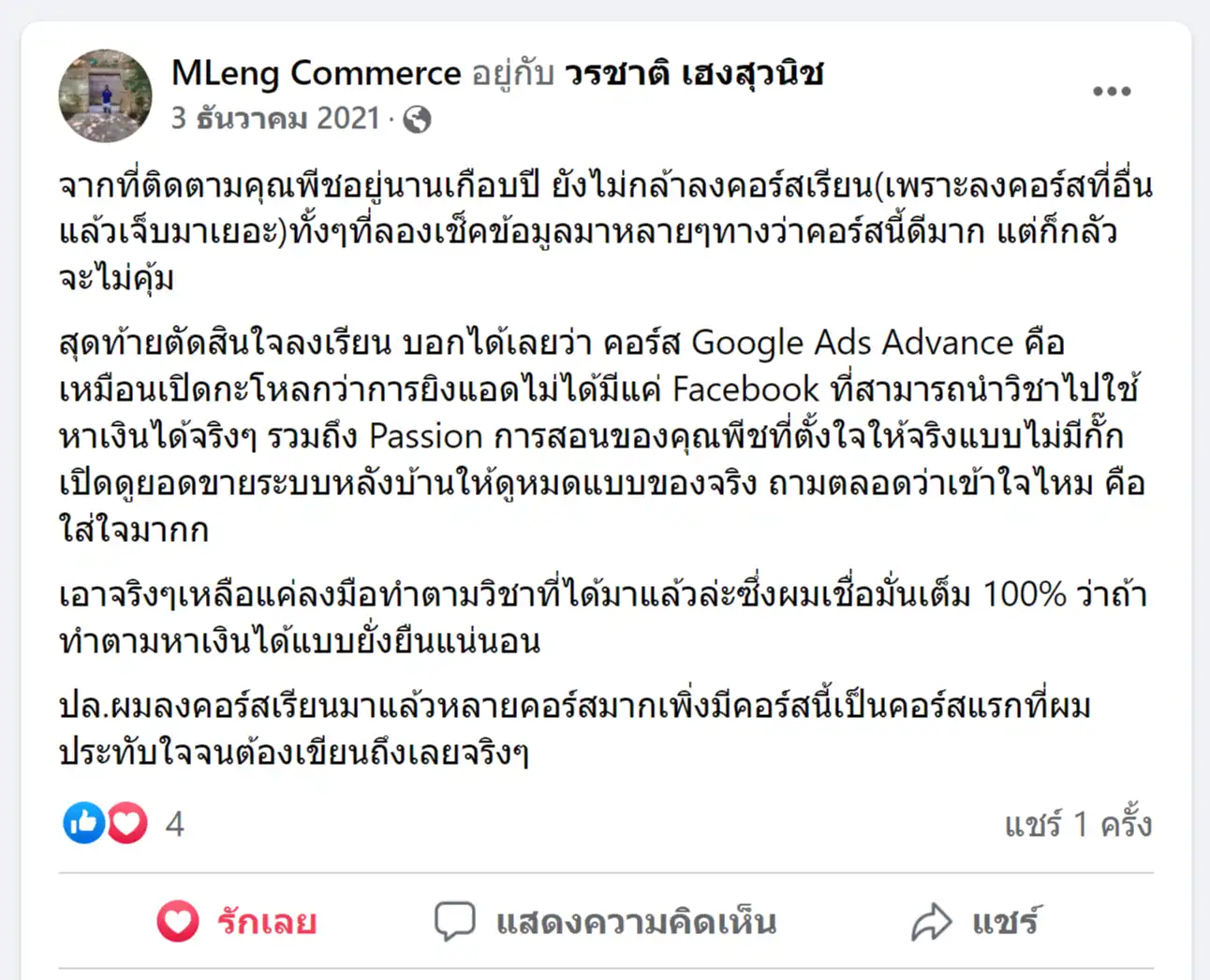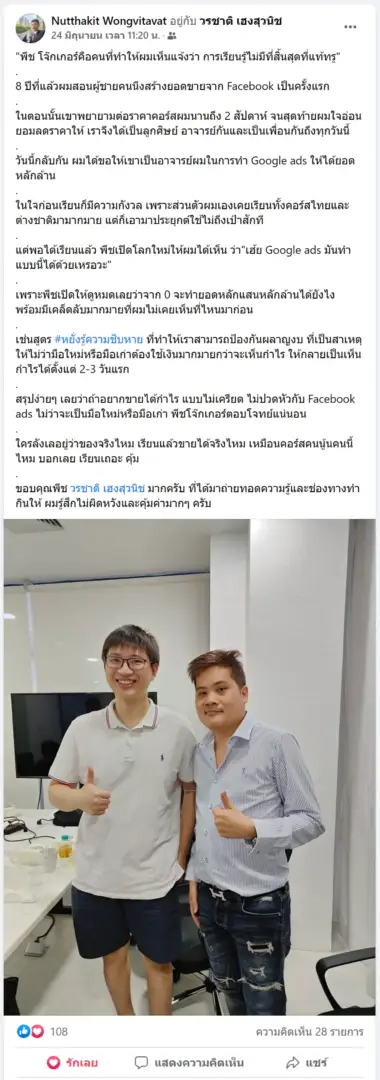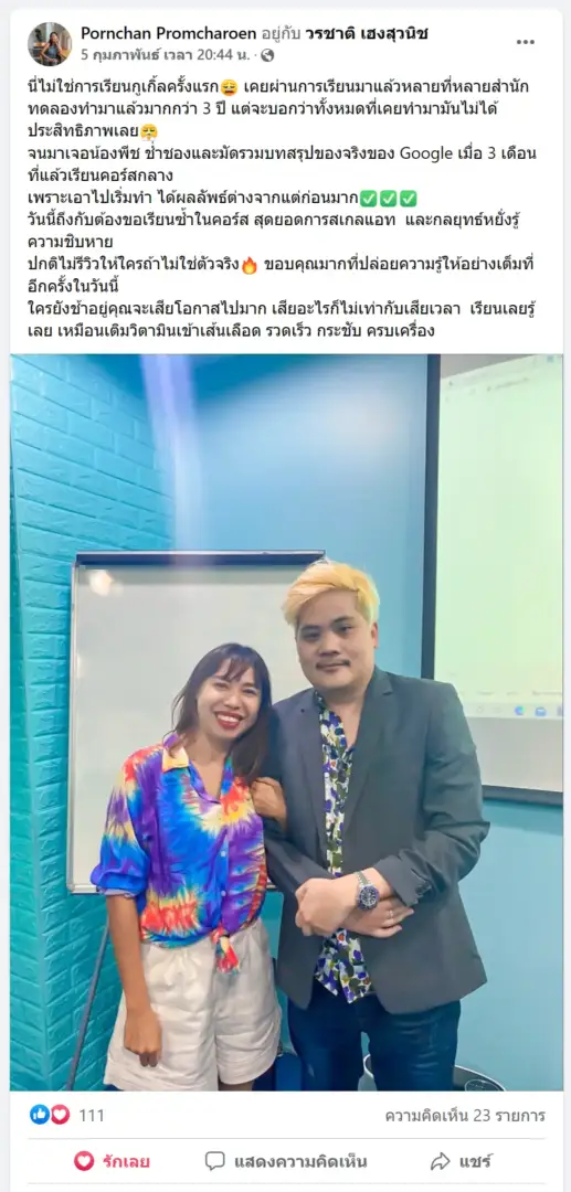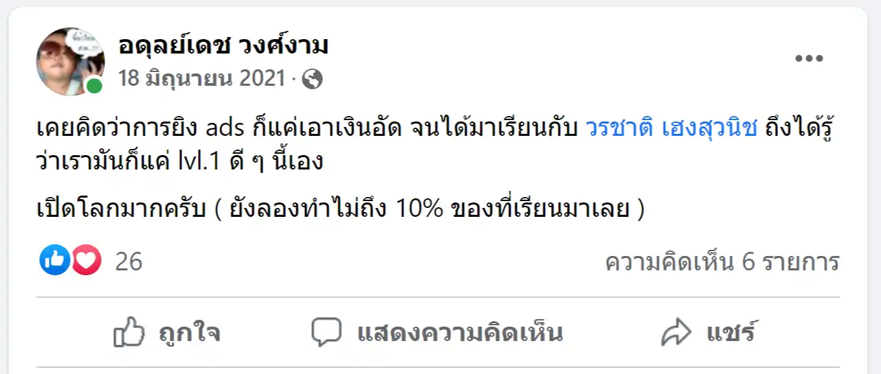 Wegrow Marketing เชื่อว่าผลลัพธ์ของท่านคือสิ่งที่สำคัญที่สุด และการที่ท่านสำเร็จและทางเราได้ผลตอบรับที่ทำให้เรามีคนสนใจลงเรียนกับเรามากขึ้น มันคือ win-win สำหรับท่านและ Wegrow Marketing