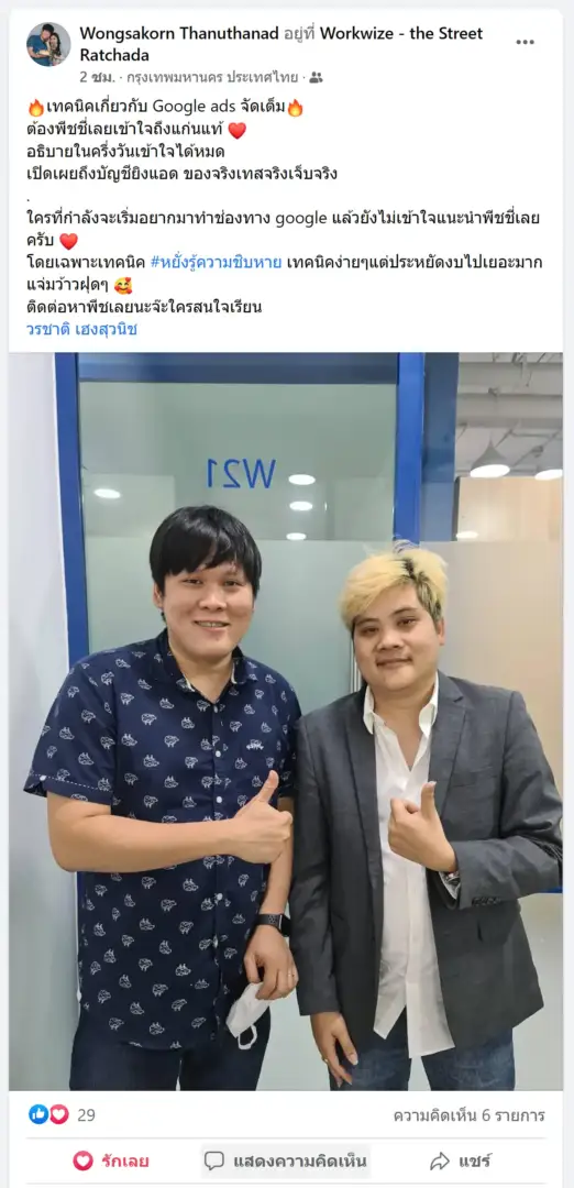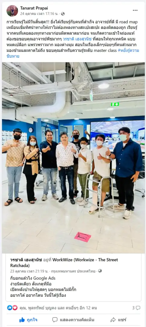 - สอนสดเจอตัวต่อตัว ที่ WorkWize เดอะ สตรีท รัชดา Co-working Space