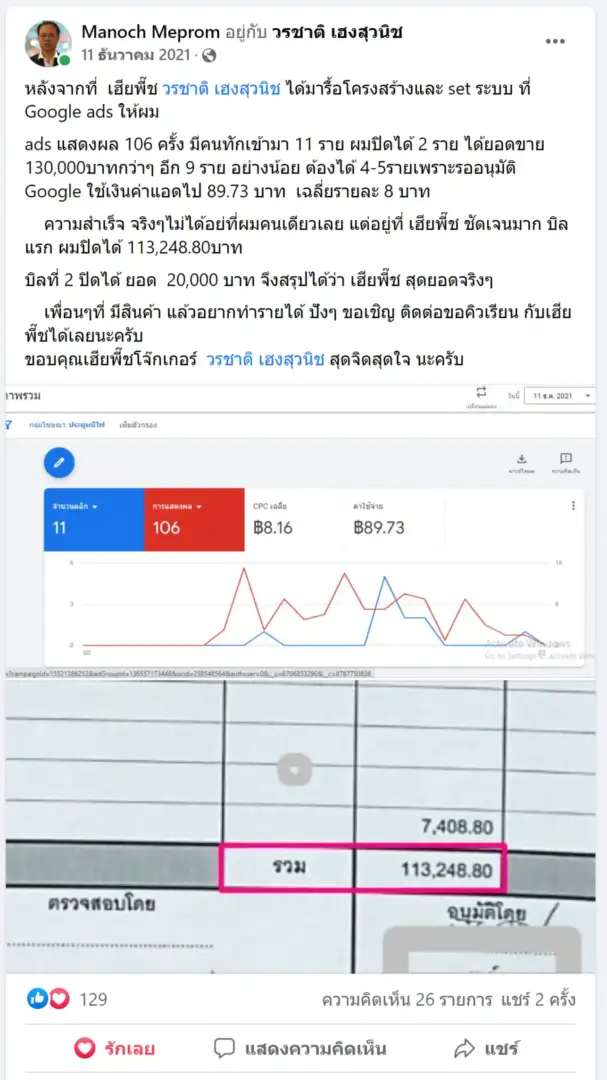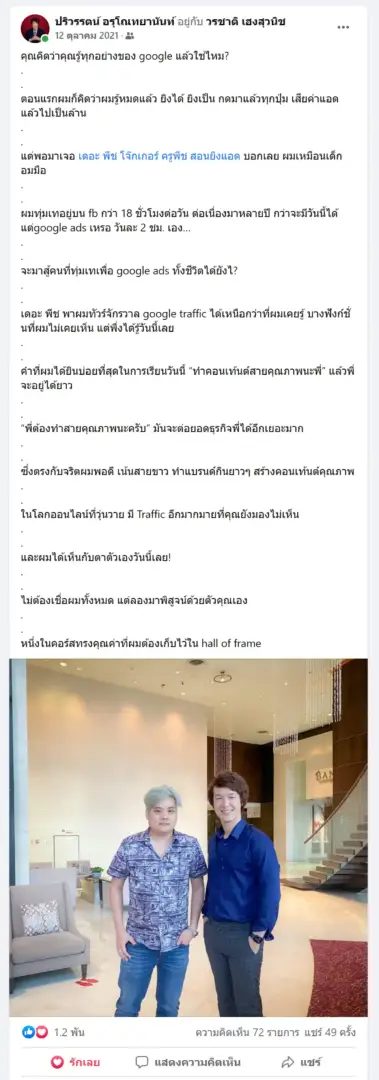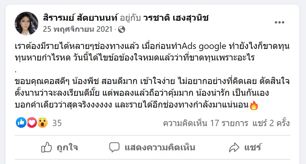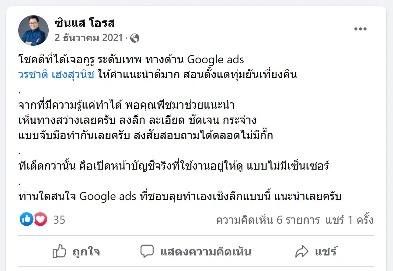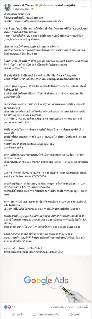 ในยุคนี้วิธีที่จะทำให้เห็นผลได้ดีและต่อเนื่องมากที่สุดยังไงผมก็ยังคงยกให้กับ “Google Ads” แต่หลายคนยังไม่รู้ผลลัพธ์ที่แท้จริง ที่ได้มากกว่า