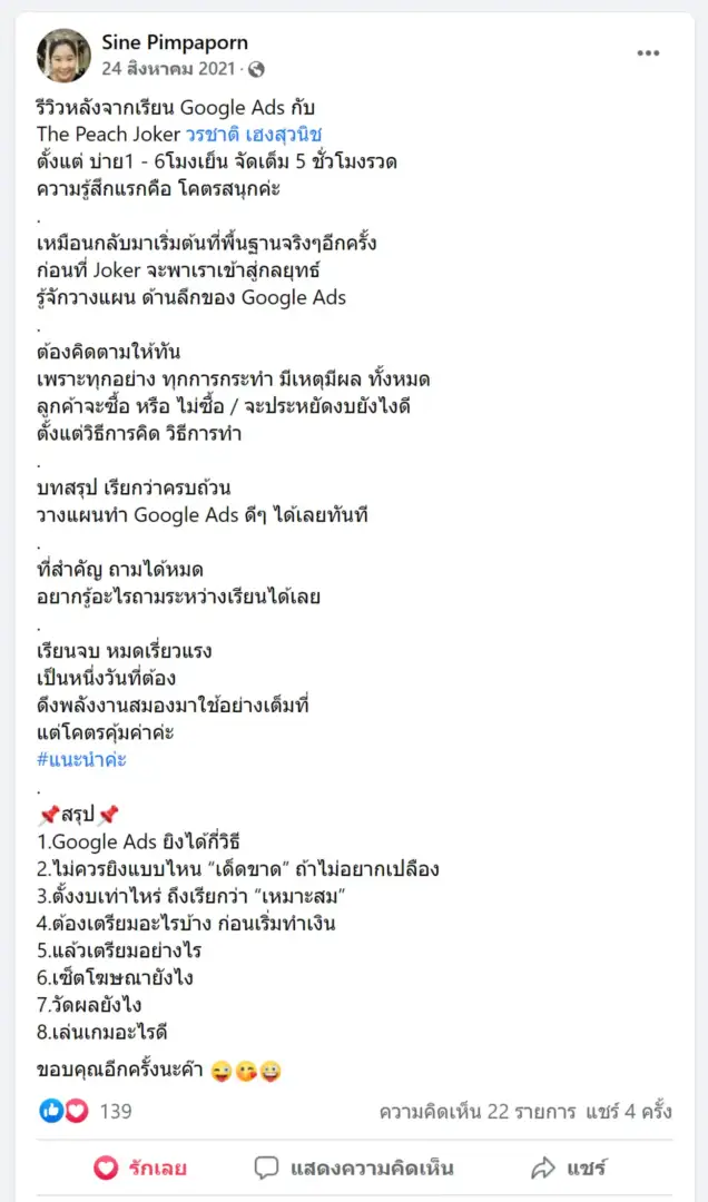 พีชเชื่อว่าทุกคนรู้จัก Google Ads กันเป็นอย่างดี ยิ่งใครทำธุรกิจออนไลน์นี่คือช่องทางสร้างโอกาสทั้งเรื่องชื่อเสียง ยอดขาย และรายได้