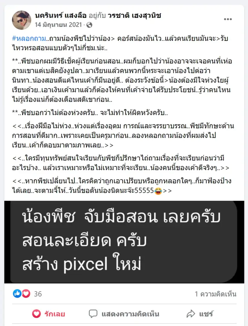 - รูปแบบการสอน : สอนสดตัวต่อตัว