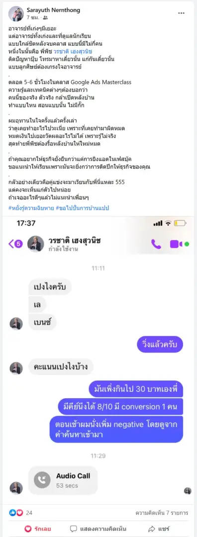 ในระหว่าง 17 ปีที่ผ่านมาครูพีชได้สั่งสมความรู้มากในเรื่องของการยิง Ads อันไหนใช้ได้จริงใช้ไม่ได้จริง ครูพีชลองมาหมด “ลองจริงเจ็บจริง” เป็นสโลแกนของครูพีช ซึ่งระหว่างทางครูพีชก็ได้รวบรวมทีมงานมือระดับพระกาฬในด้านการยิง Ads และหลายๆคน ครูพีชก็นับถือพวกเขาเป็นอาจารย์อีกที โดยในแต่ละคนมีความสามารถในเฉพาะทางที่แตกต่างกันออกไป มีความถนัดพิเศษในแต่ละ Platform